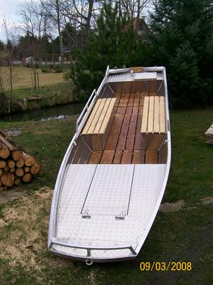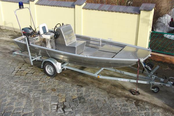 "Leichtboot" Masse: 89 kg, 4,5m lang, zugelassen für 4 Personen, Motorisierung bis 10 PS