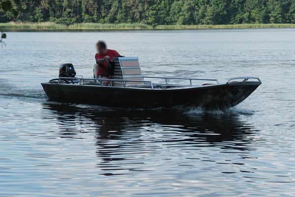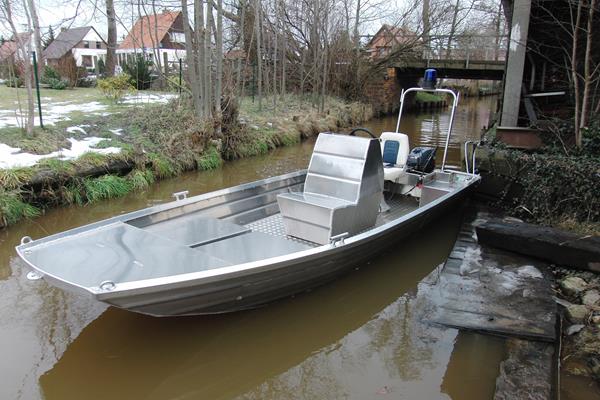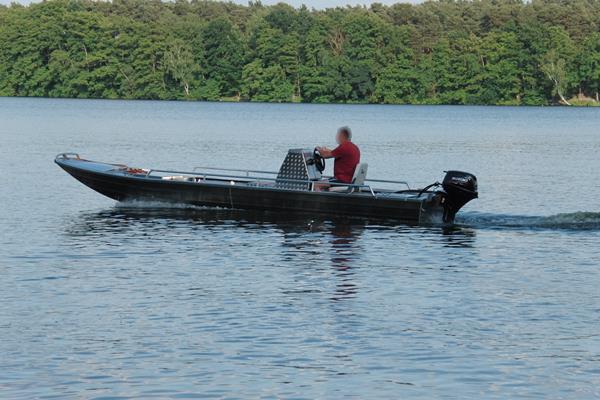Heckmotorboot mit Steuerstand für Landesbehörde Brandenburg, 4,5m lang, zugelassen für 4 Personen, Motorleistung min. 15 PS